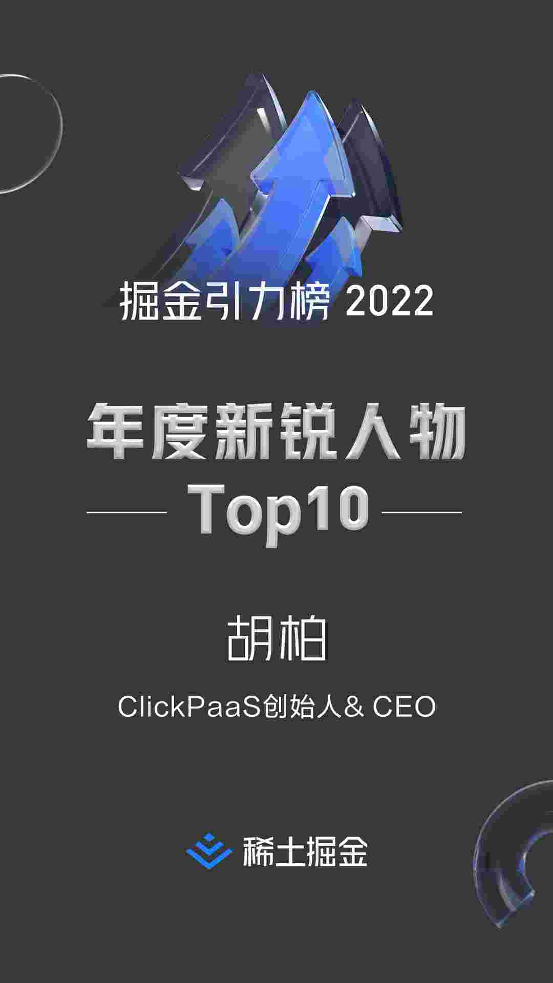 2022年1月6日,,,,稀土掘金社区第一届「掘金未来大会」成功举办,,,会上发布了“2022 稀土掘金引力榜 年度新锐人物”榜单,,,,上海爱湃斯科技有限公司(简称GOPAY钱包)创始人及CEO胡柏实力入选年度新锐人物TOP 10。。